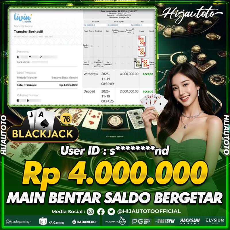 Selamat datang di HIJAUTOTO, tempatnya seru-seruan dan cuan besar! Mulai main cukup dengan modal Rp5.000 aja, taruhan super murah dari Rp100 perak! Mau main slot yang penuh warna? Atau togel dari 20 pasaran paling hits? Atau mungkin tembak ikan yang bikin deg-degan? Tenang, ada juga taruhan bola, sabung ayam, dan live casino yang bikin suasana makin hidup! Daftar sekarang dan dapetin bonus new member 100% langsung, biar modalmu makin tebal. Deposit gampang banget, bisa pakai QRIS, dan kalau butuh bantuan, customer service kita siap 24 jam nonstop. Jadi, tunggu apa lagi? Yuk, gabung dan bawa pulang kemenangannya cuma di HIJAUTOTO!