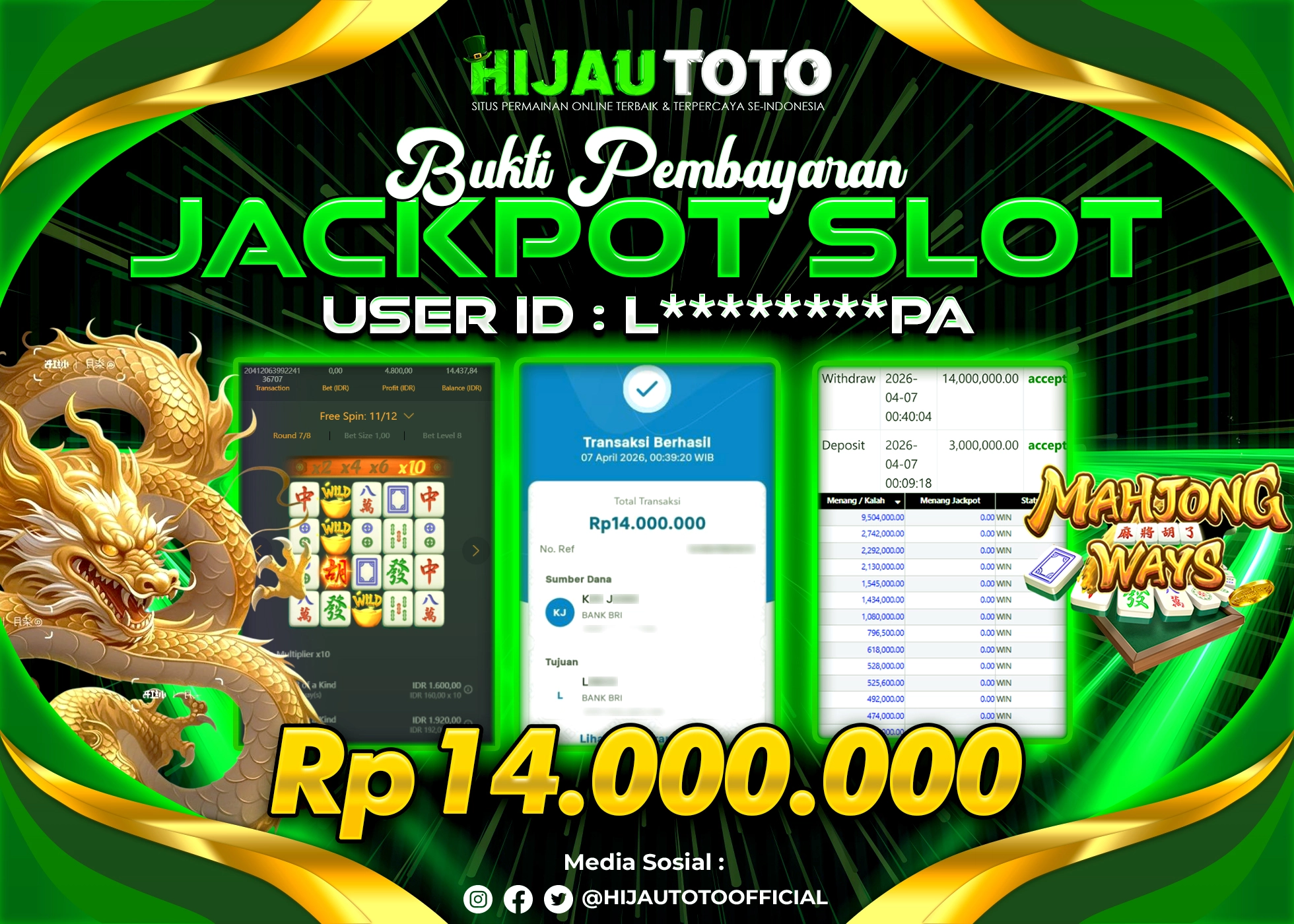 Selamat datang di HIJAUTOTO, tempatnya seru-seruan dan cuan besar! Mulai main cukup dengan modal Rp5.000 aja, taruhan super murah dari Rp100 perak! Mau main slot yang penuh warna? Atau togel dari 20 pasaran paling hits? Atau mungkin tembak ikan yang bikin deg-degan? Tenang, ada juga taruhan bola, sabung ayam, dan live casino yang bikin suasana makin hidup! Daftar sekarang dan dapetin bonus new member 100% langsung, biar modalmu makin tebal. Deposit gampang banget, bisa pakai QRIS, dan kalau butuh bantuan, customer service kita siap 24 jam nonstop. Jadi, tunggu apa lagi? Yuk, gabung dan bawa pulang kemenangannya cuma di HIJAUTOTO!