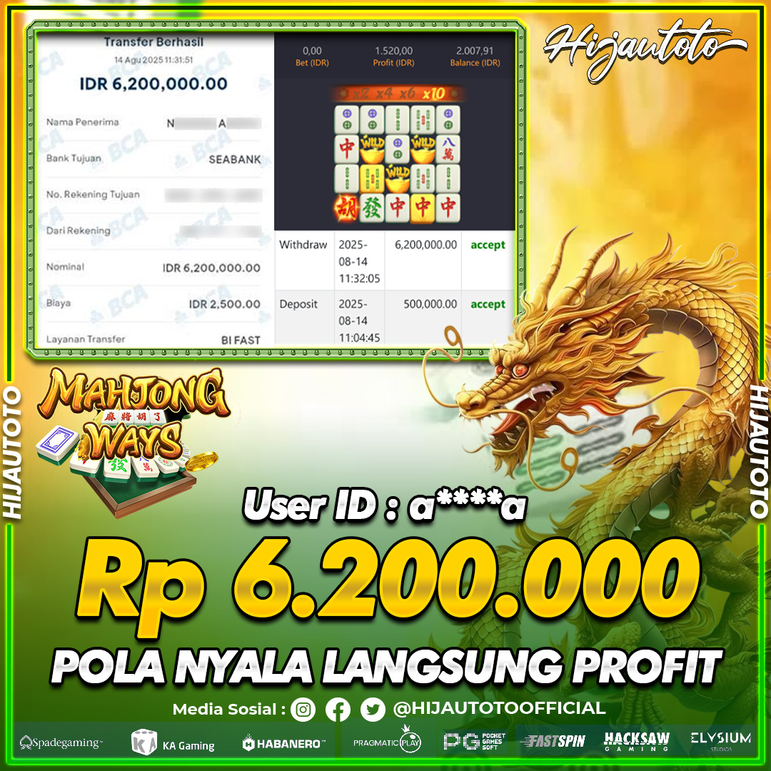 Selamat datang di HIJAUTOTO, tempatnya seru-seruan dan cuan besar! Mulai main cukup dengan modal Rp5.000 aja, taruhan super murah dari Rp100 perak! Mau main slot yang penuh warna? Atau togel dari 20 pasaran paling hits? Atau mungkin tembak ikan yang bikin deg-degan? Tenang, ada juga taruhan bola, sabung ayam, dan live casino yang bikin suasana makin hidup! Daftar sekarang dan dapetin bonus new member 100% langsung, biar modalmu makin tebal. Deposit gampang banget, bisa pakai QRIS, dan kalau butuh bantuan, customer service kita siap 24 jam nonstop. Jadi, tunggu apa lagi? Yuk, gabung dan bawa pulang kemenangannya cuma di HIJAUTOTO!