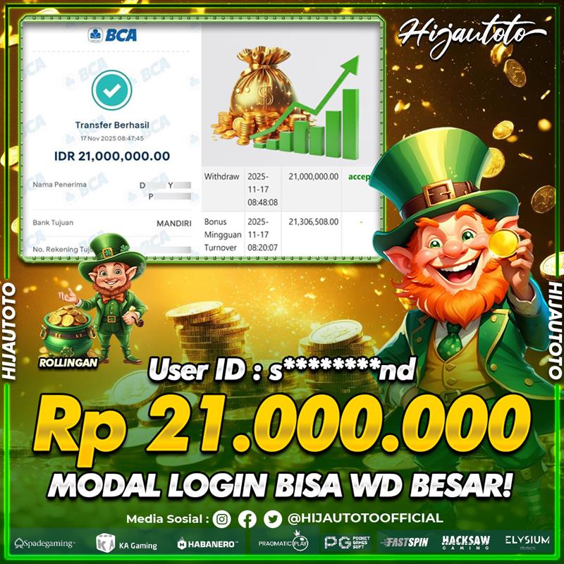Selamat datang di HIJAUTOTO, tempatnya seru-seruan dan cuan besar! Mulai main cukup dengan modal Rp5.000 aja, taruhan super murah dari Rp100 perak! Mau main slot yang penuh warna? Atau togel dari 20 pasaran paling hits? Atau mungkin tembak ikan yang bikin deg-degan? Tenang, ada juga taruhan bola, sabung ayam, dan live casino yang bikin suasana makin hidup! Daftar sekarang dan dapetin bonus new member 100% langsung, biar modalmu makin tebal. Deposit gampang banget, bisa pakai QRIS, dan kalau butuh bantuan, customer service kita siap 24 jam nonstop. Jadi, tunggu apa lagi? Yuk, gabung dan bawa pulang kemenangannya cuma di HIJAUTOTO!