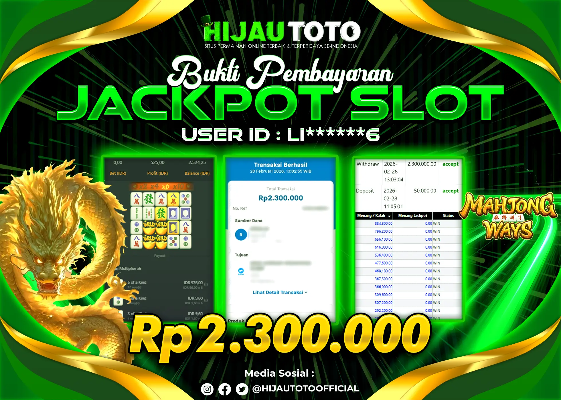 Bergabung dengan HIJAUTOTO sangat mudah dan cepat. Cukup lakukan pendaftaran dengan data lengkap, lakukan deposit minimal Rp5.000 melalui berbagai metode termasuk QRIS, dan mulai bertaruh dengan minimal taruhan Rp100. Dapatkan juga bonus new member 100% untuk modal bermain lebih besar.