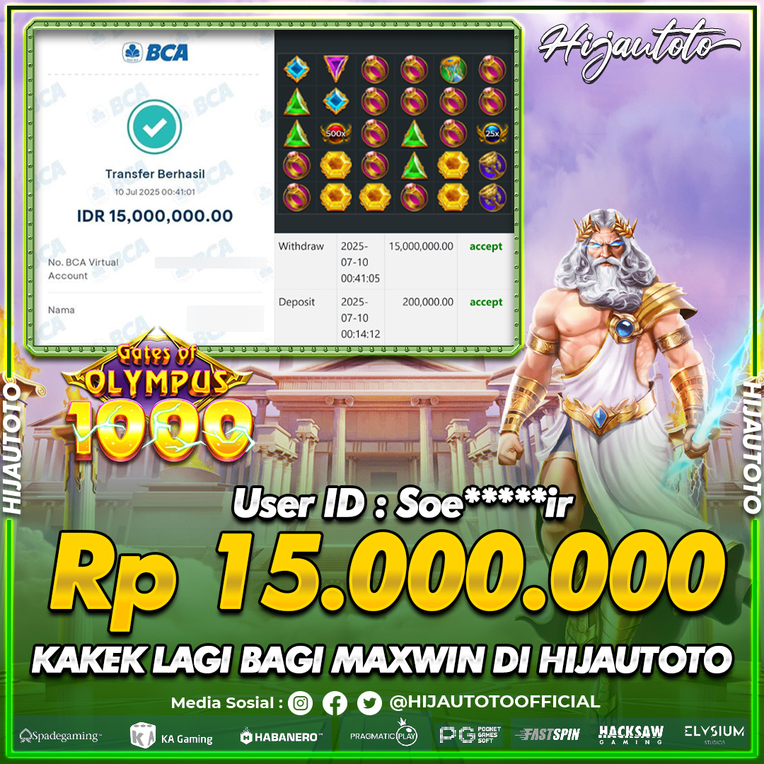 β¨ JACKPOT DI SLOT GATES OF OLYMPUS 1000 β¨
