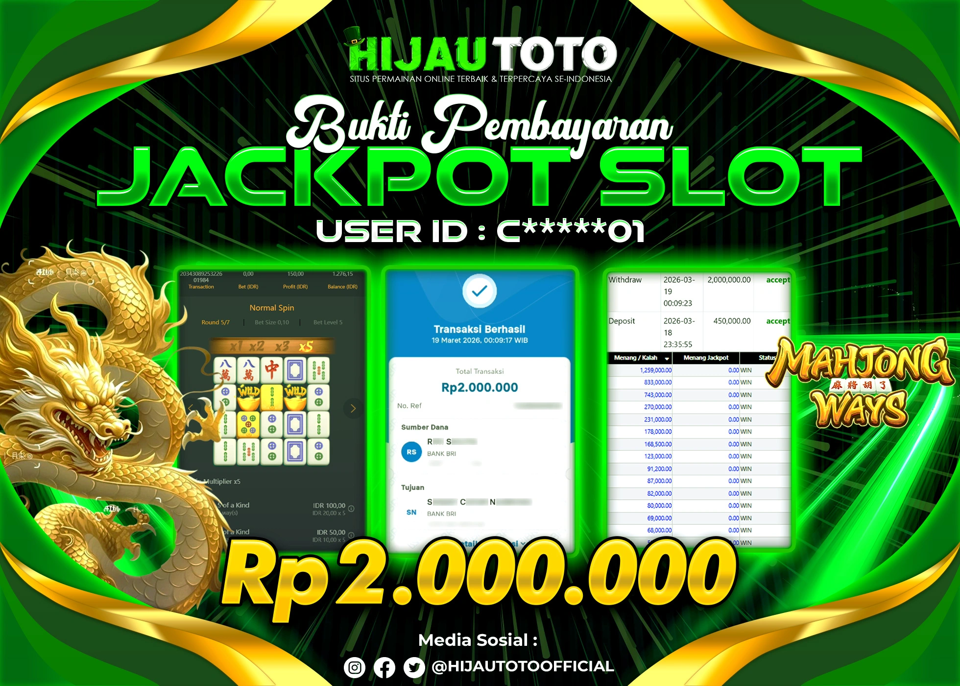 Bergabung dengan HIJAUTOTO sangat mudah dan cepat. Cukup lakukan pendaftaran dengan data lengkap, lakukan deposit minimal Rp5.000 melalui berbagai metode termasuk QRIS, dan mulai bertaruh dengan minimal taruhan Rp100. Dapatkan juga bonus new member 100% untuk modal bermain lebih besar.