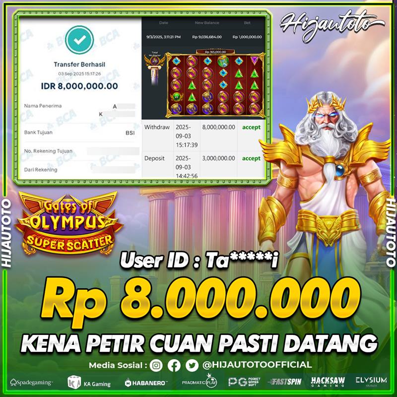 Selamat datang di HIJAUTOTO, tempatnya seru-seruan dan cuan besar! Mulai main cukup dengan modal Rp5.000 aja, taruhan super murah dari Rp100 perak! Mau main slot yang penuh warna? Atau togel dari 20 pasaran paling hits? Atau mungkin tembak ikan yang bikin deg-degan? Tenang, ada juga taruhan bola, sabung ayam, dan live casino yang bikin suasana makin hidup! Daftar sekarang dan dapetin bonus new member 100% langsung, biar modalmu makin tebal. Deposit gampang banget, bisa pakai QRIS, dan kalau butuh bantuan, customer service kita siap 24 jam nonstop. Jadi, tunggu apa lagi? Yuk, gabung dan bawa pulang kemenangannya cuma di HIJAUTOTO!
